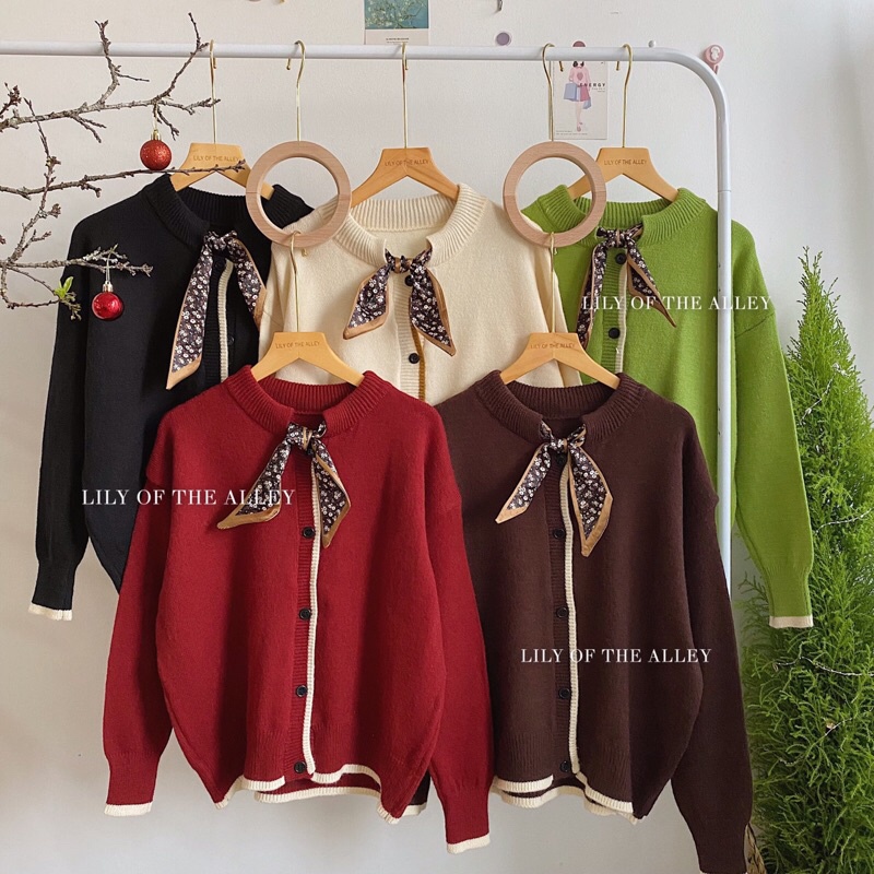 Áo len cổ nơ khuy dọc free ship